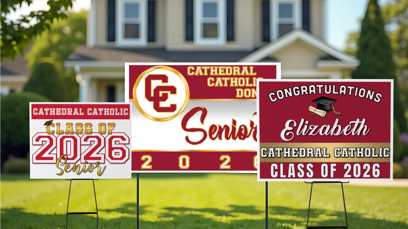 Celebrate your 2026 Cathedral Catholic Graduate with our vibrant yard signs!